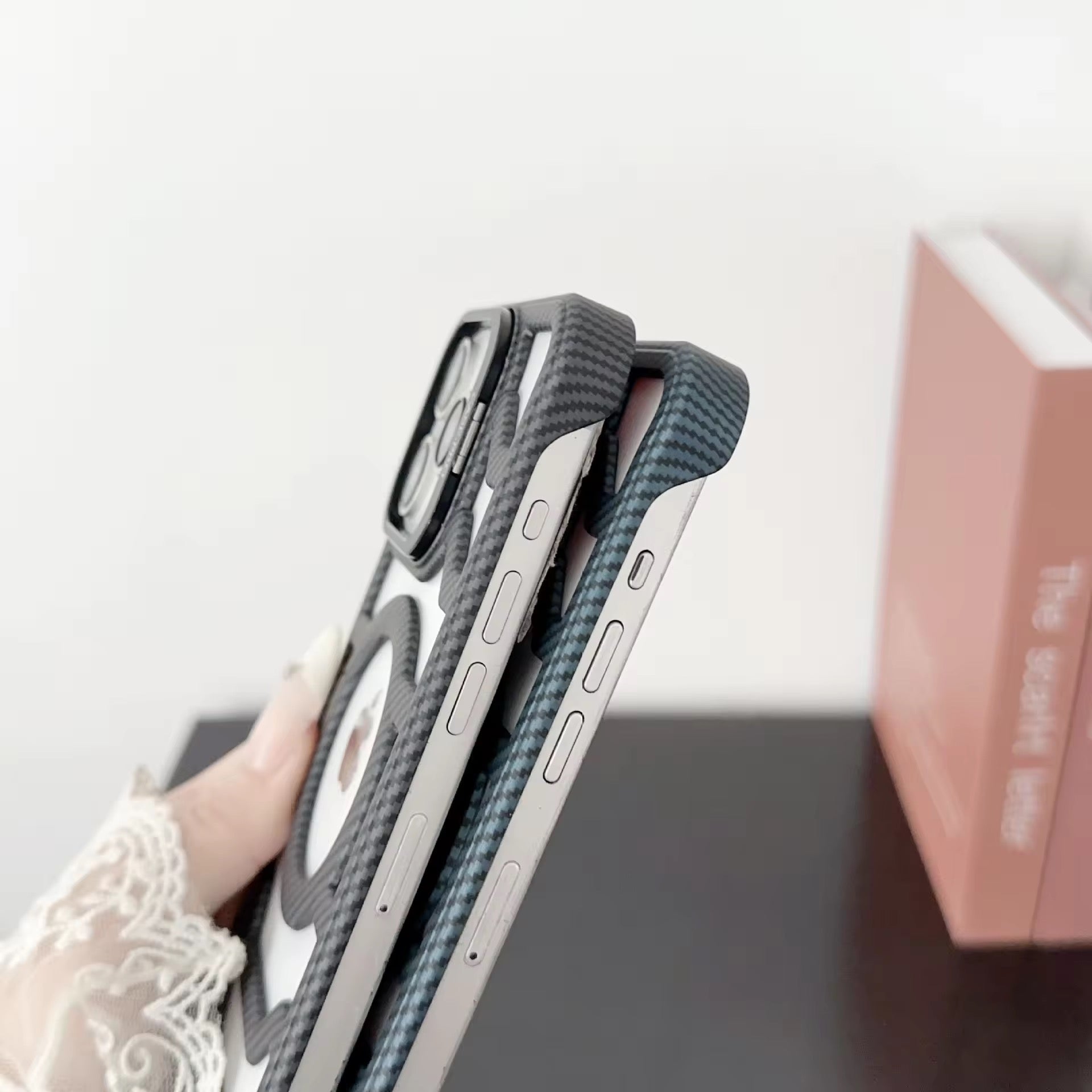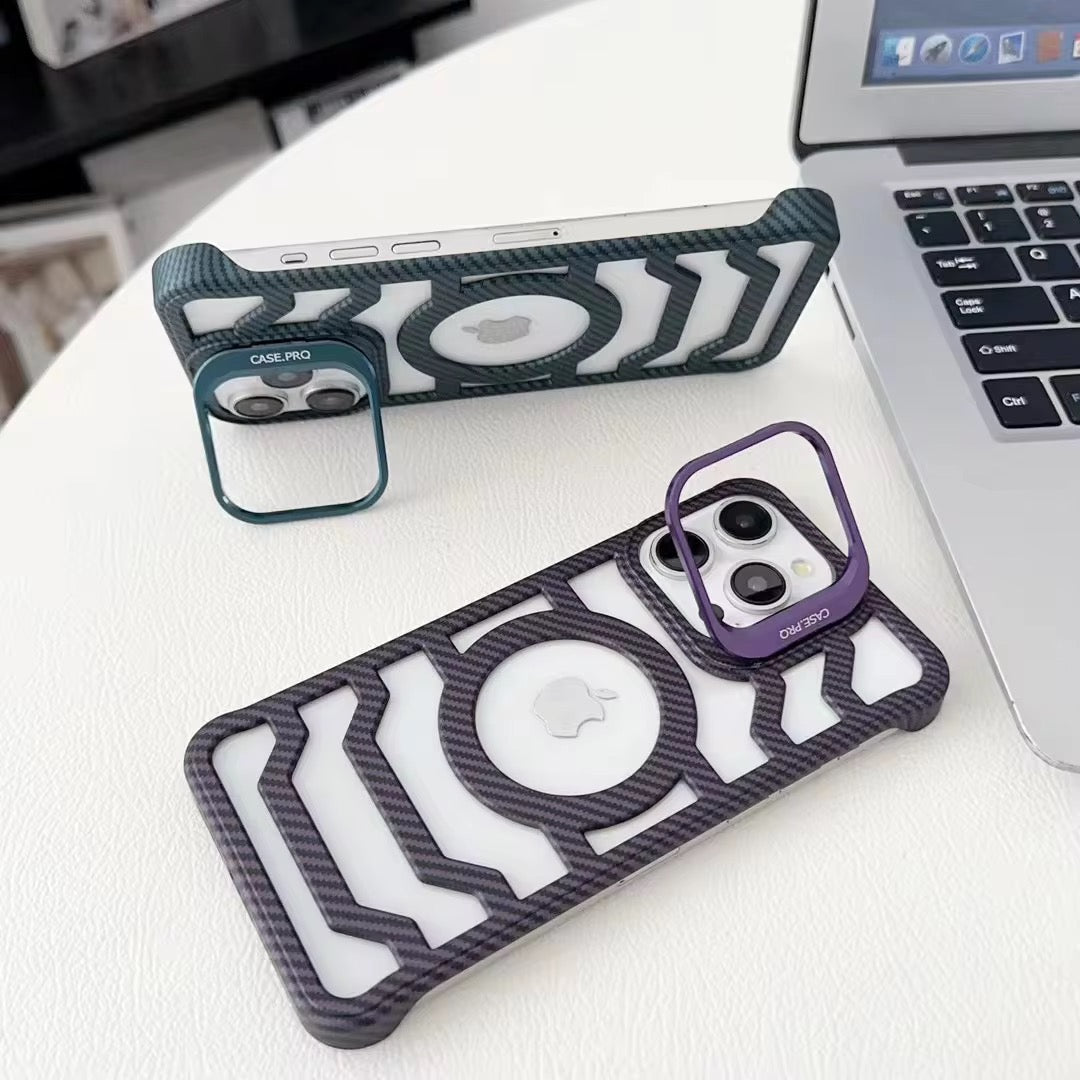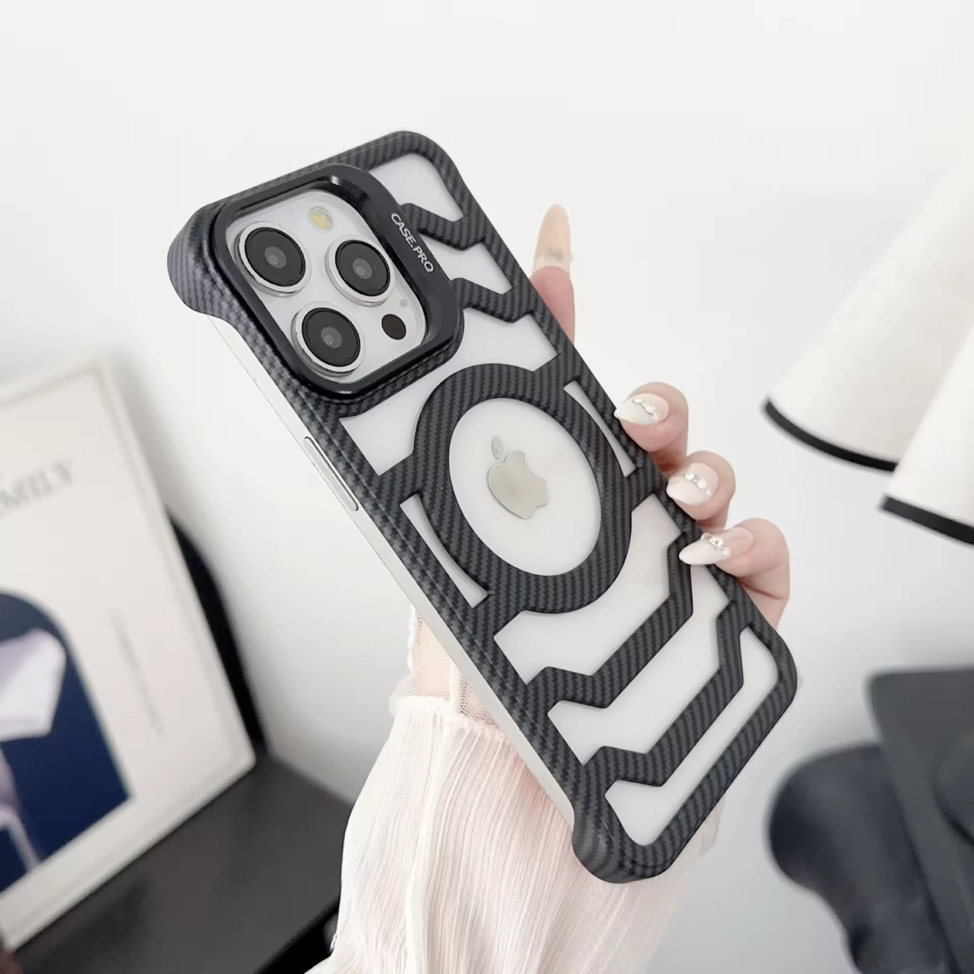 Slim Fit Carbon Fibre Magsafe Case with Stand for iPhone