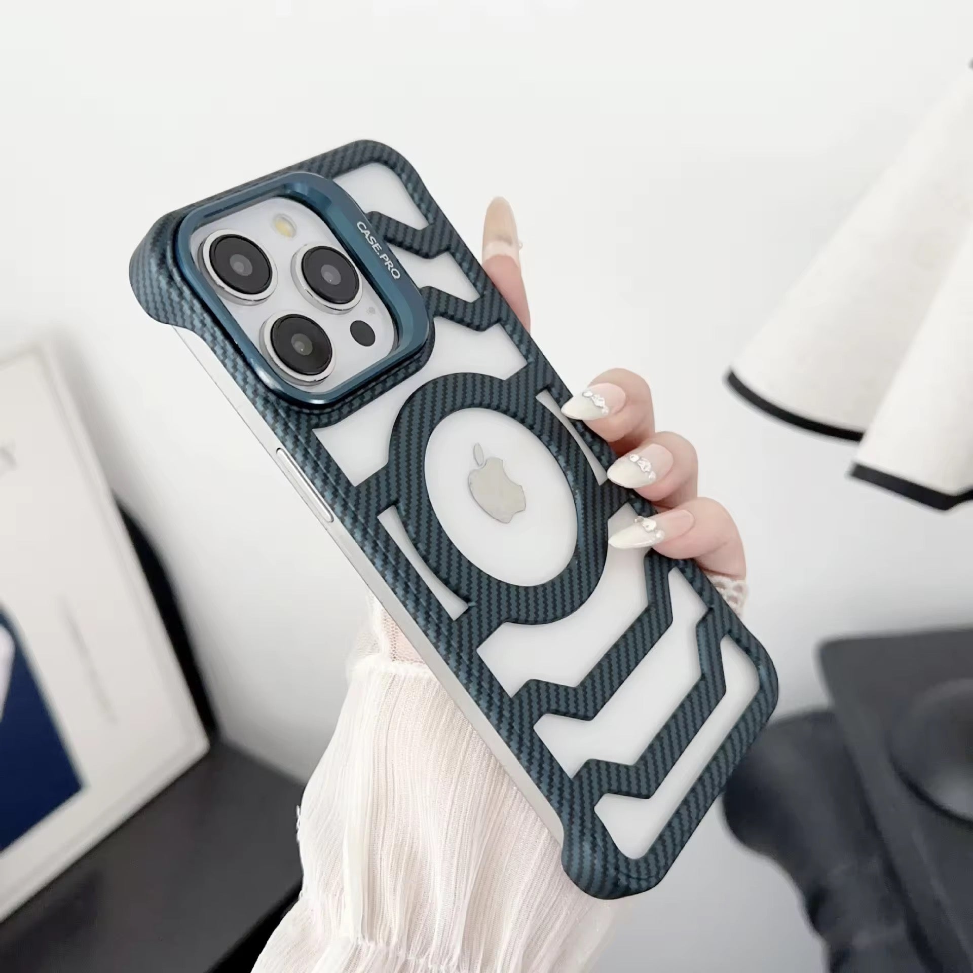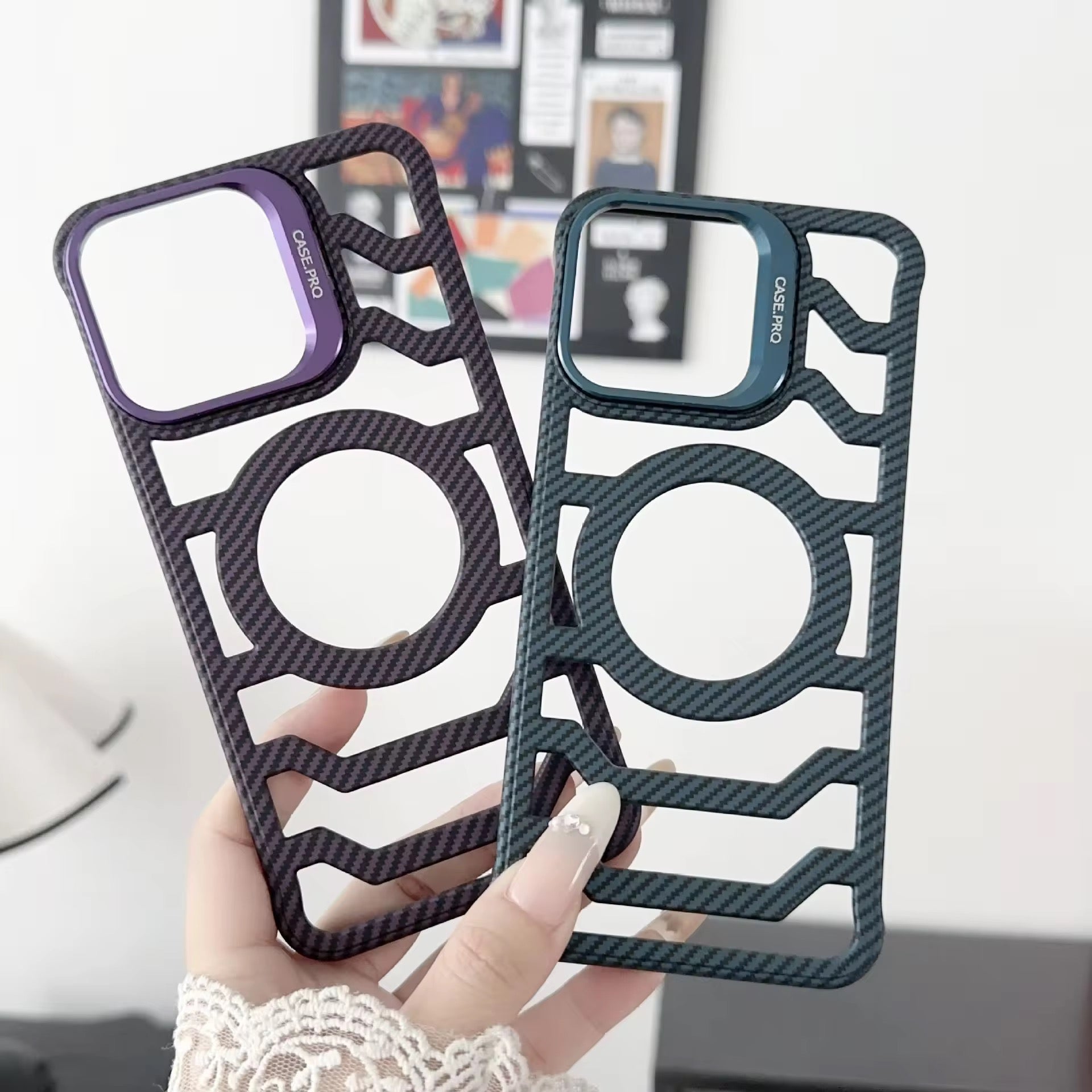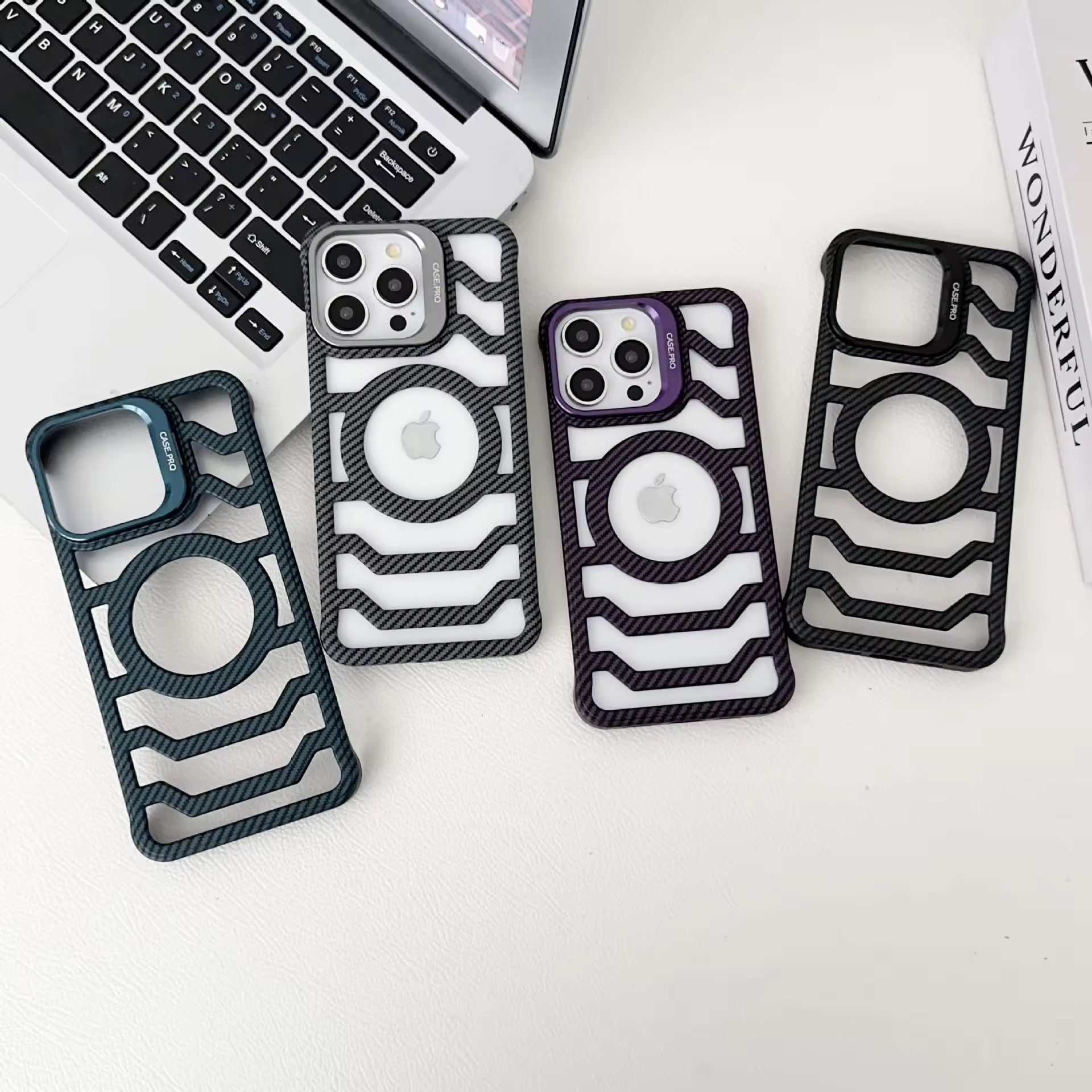 Slim Fit Carbon Fibre Magsafe Case with Stand for iPhone