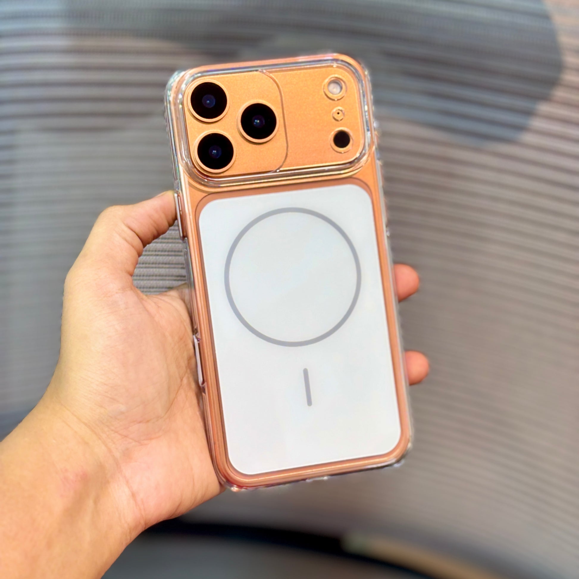 Bold edges. Clear confidence. The ClairBloc Case combines color-block detailing with crystal transparency, built for those who love a pop of tone without hiding their iPhone’s design.