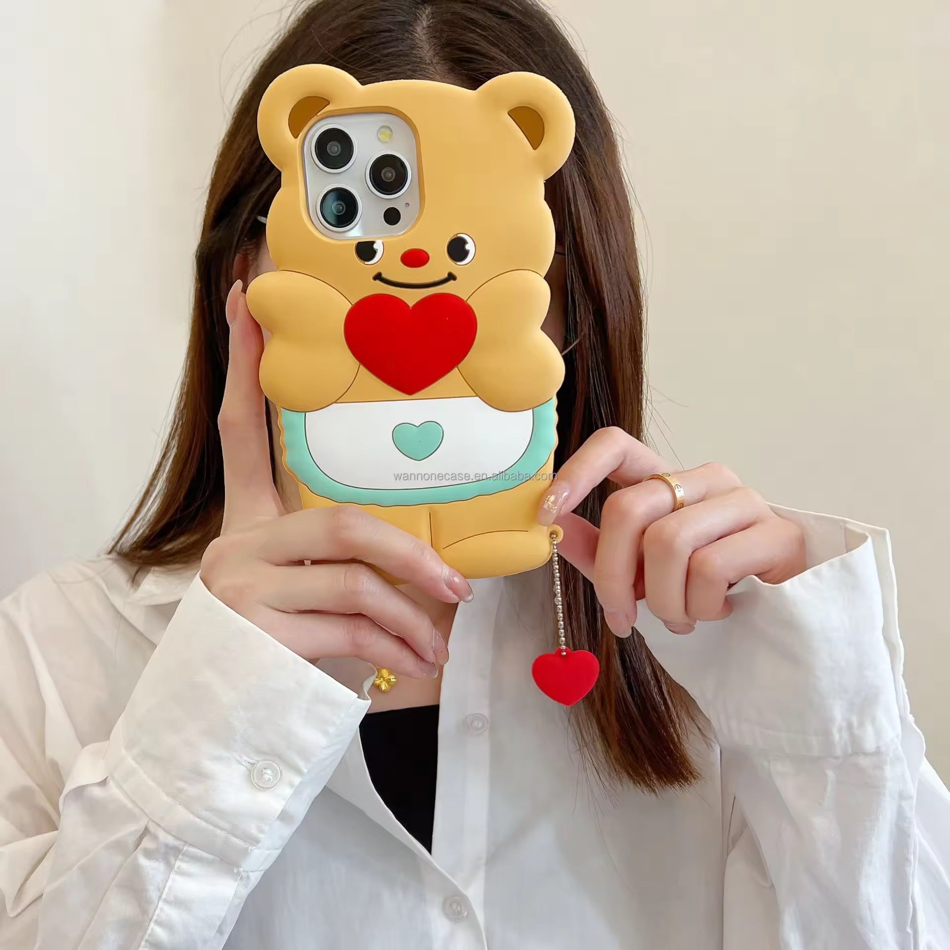 The Fancy Soft Silicone Bear Case for iPhone 15 Series has the following feature-