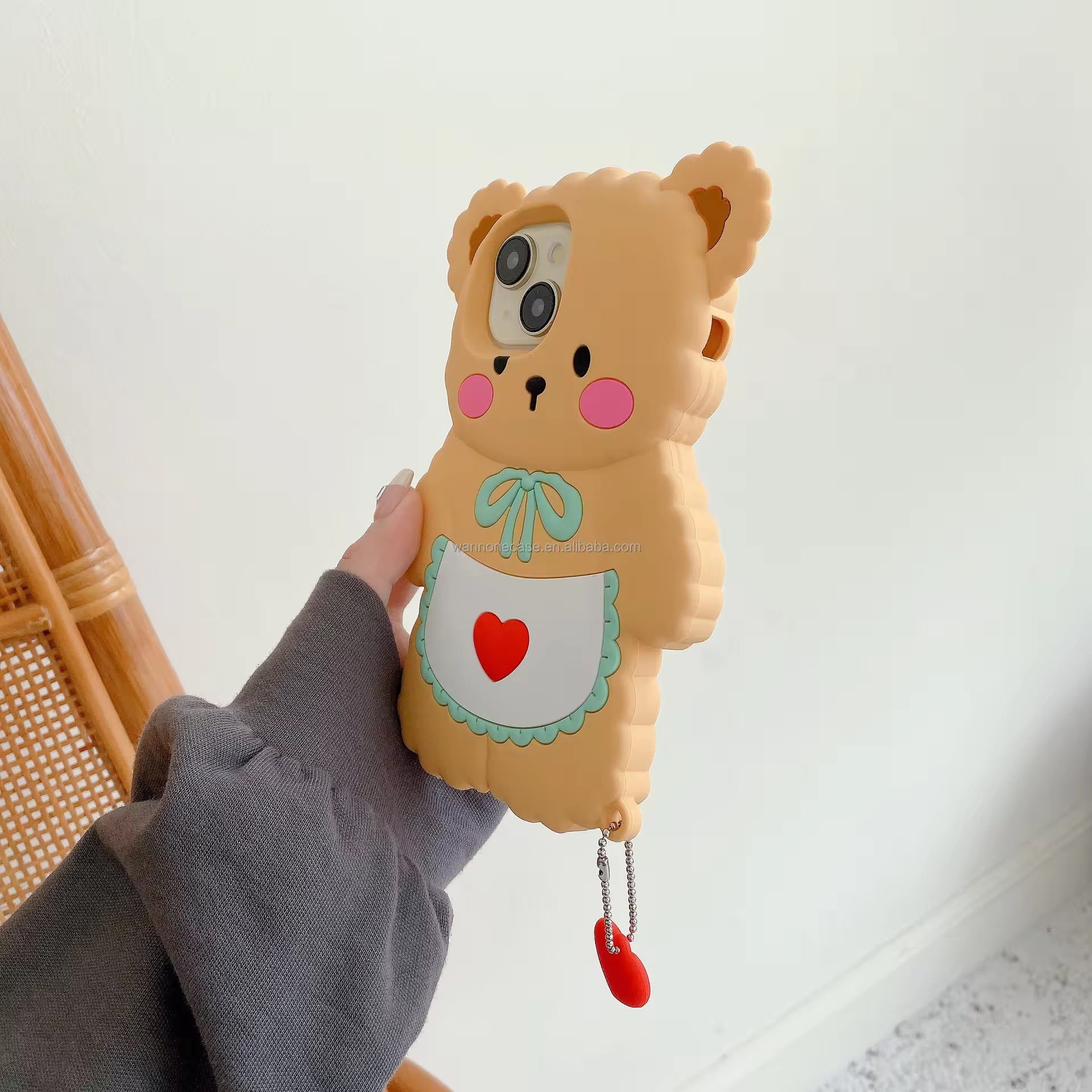- The chain with a heart is attached to the case
