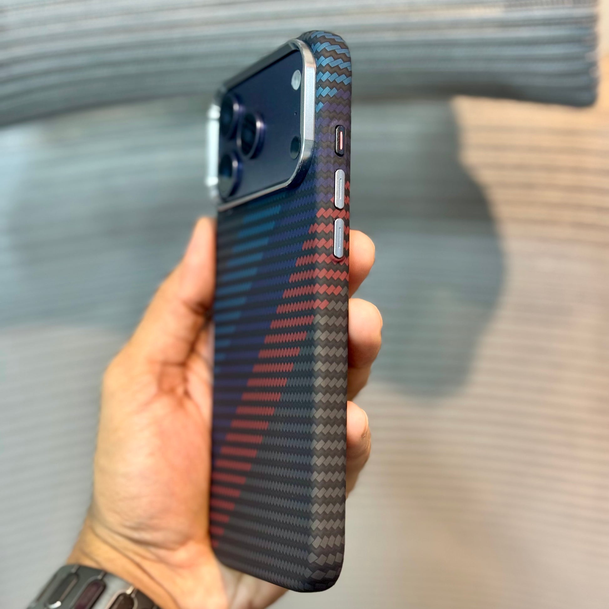 The FibreLux Case is crafted with premium carbon fiber and luxe detailing, built to deliver strong protection while maintaining a sleek and modern appeal. Designed with MagSafe compatibility, reinforced metal camera protection, and a hard protective build, it offers both durability and elegance for everyday use.