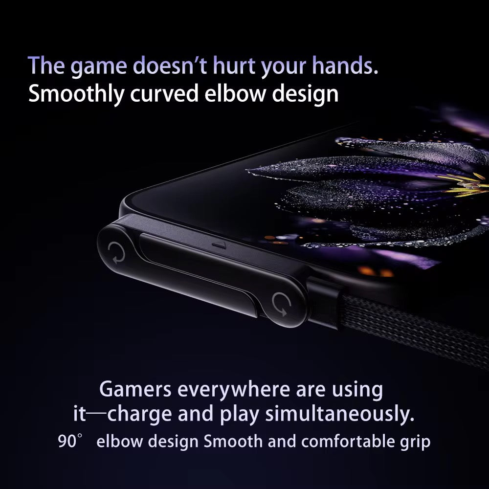 90° Elbow + 360° Rotation – Adjustable horizontally and vertically for comfortable gaming, streaming, or browsing while charging.