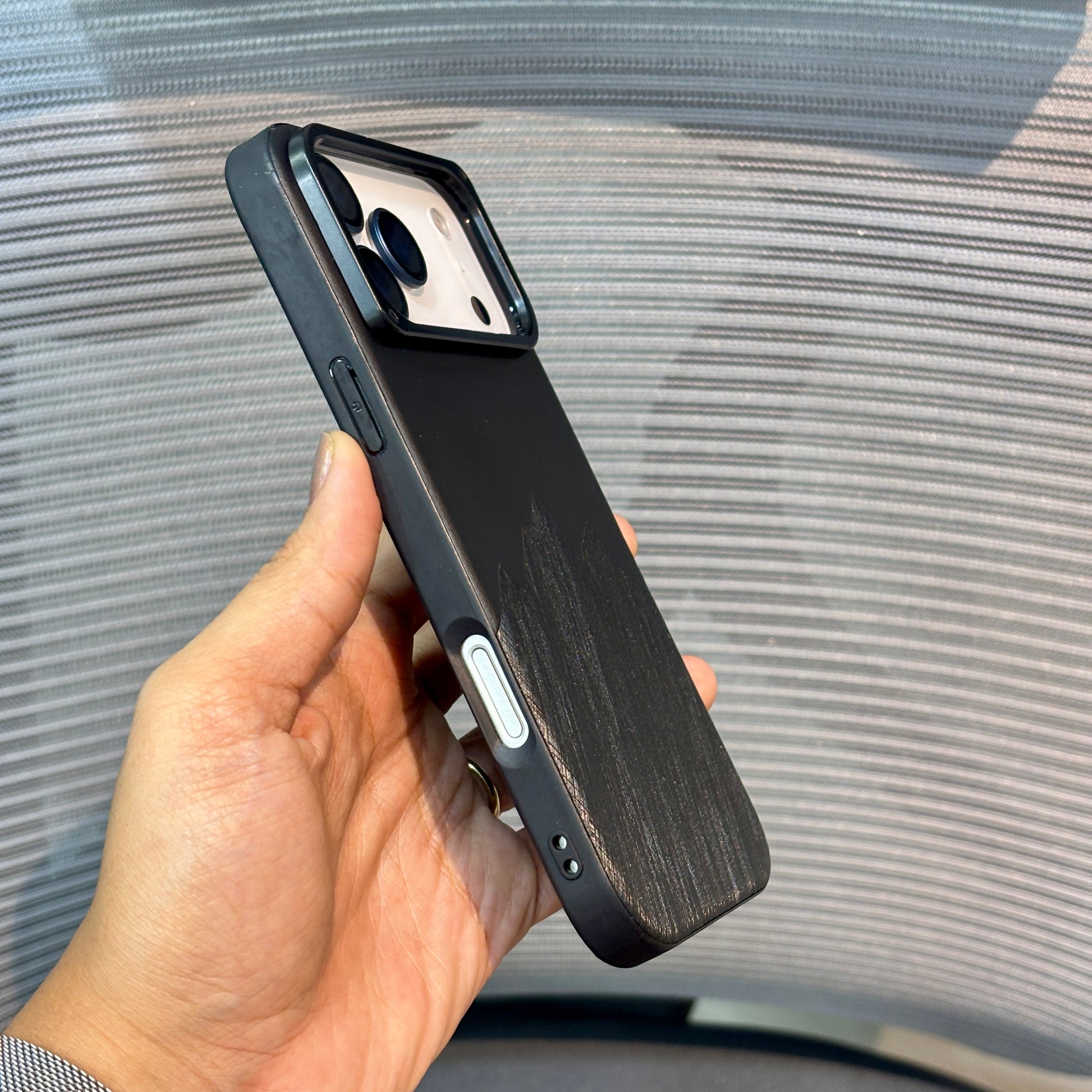 A refined blend of texture and shine — this case combines a leather-like finish with glossy foil detailing, designed for everyday elegance with dependable protection.