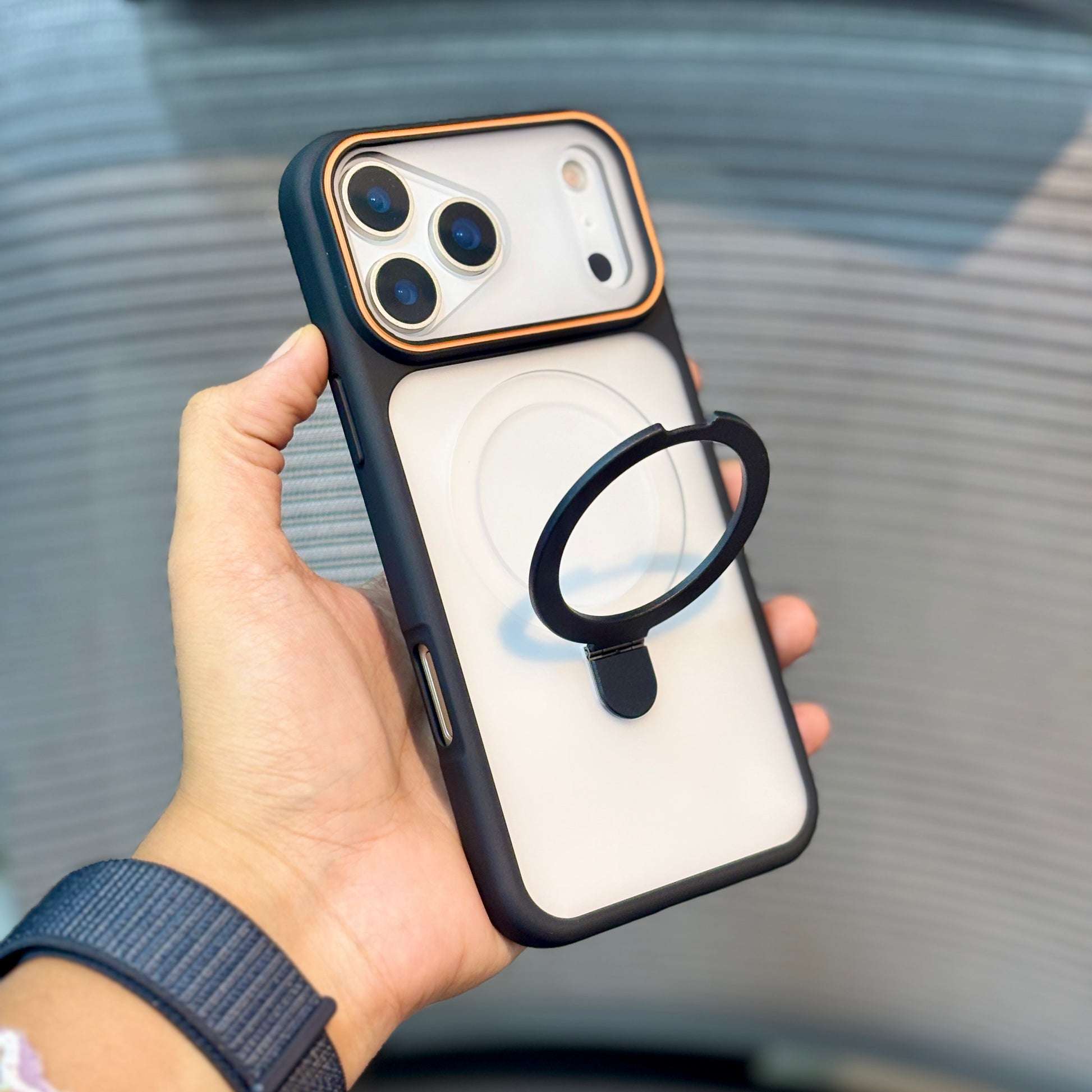The FrostEdge MagSafe Case blends everyday functionality with a stylish frosted finish and vibrant side borders. Designed for daily use, it offers dependable protection, a built-in MagSafe stand, and a refined look.