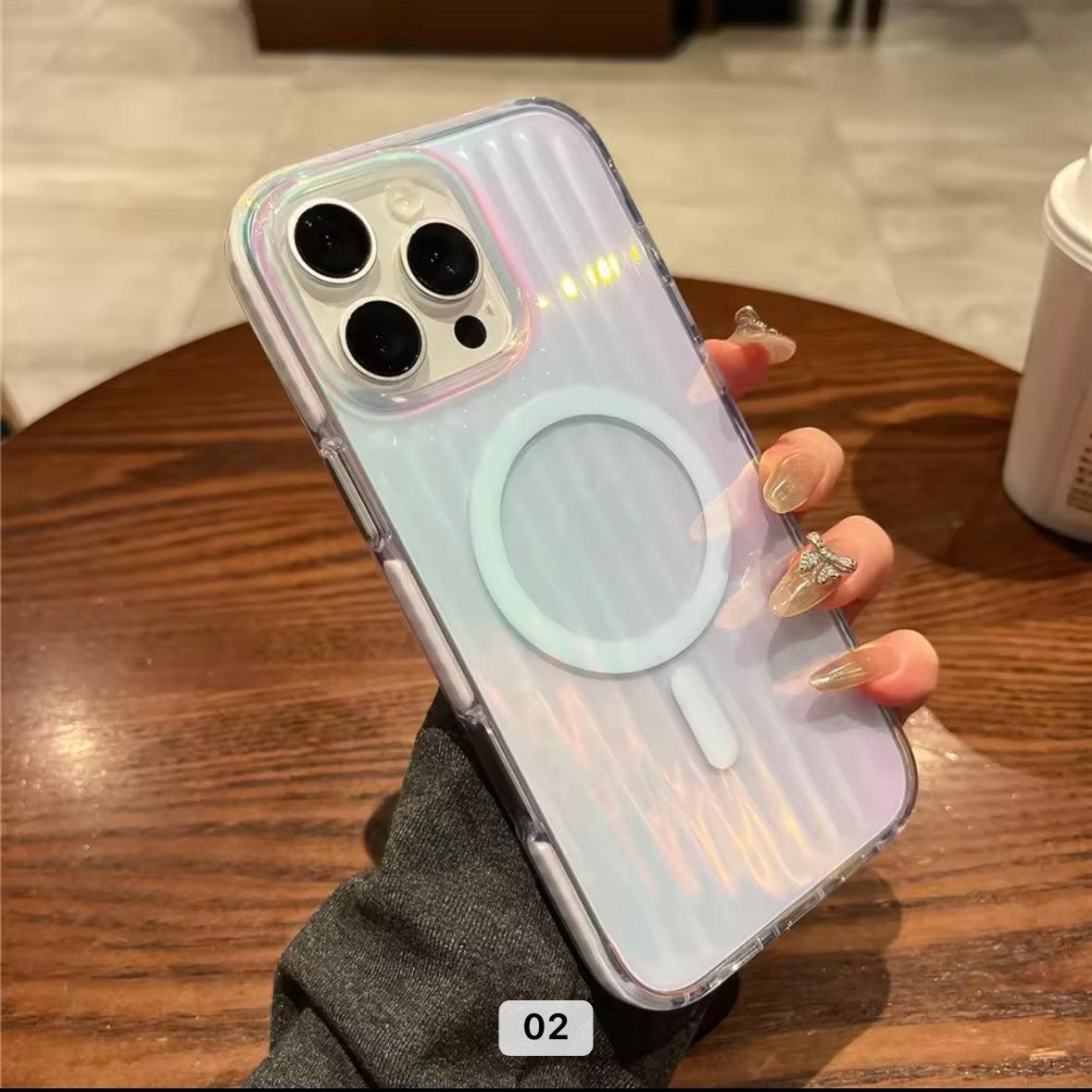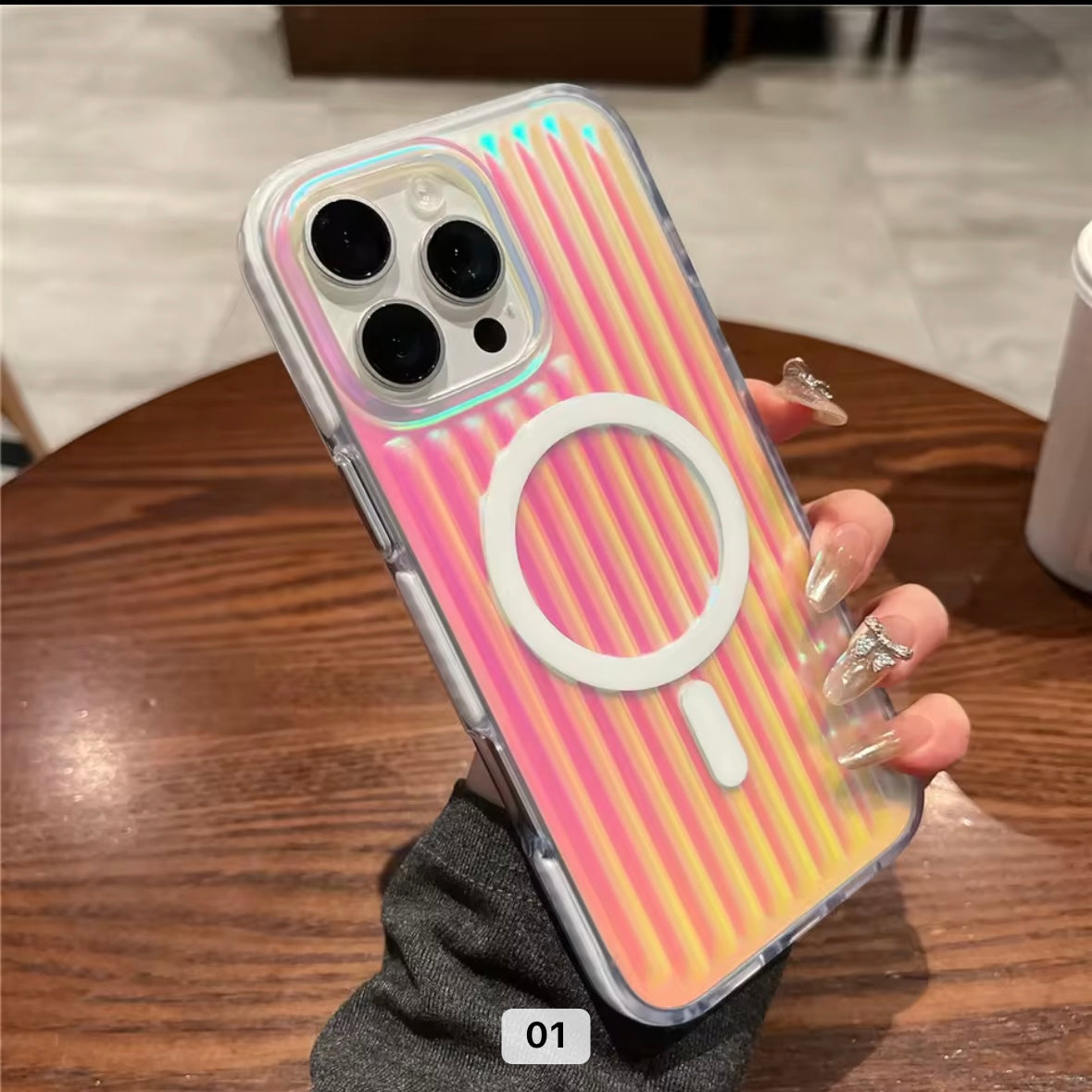 - Holographic enabling chromatic finish with stripes