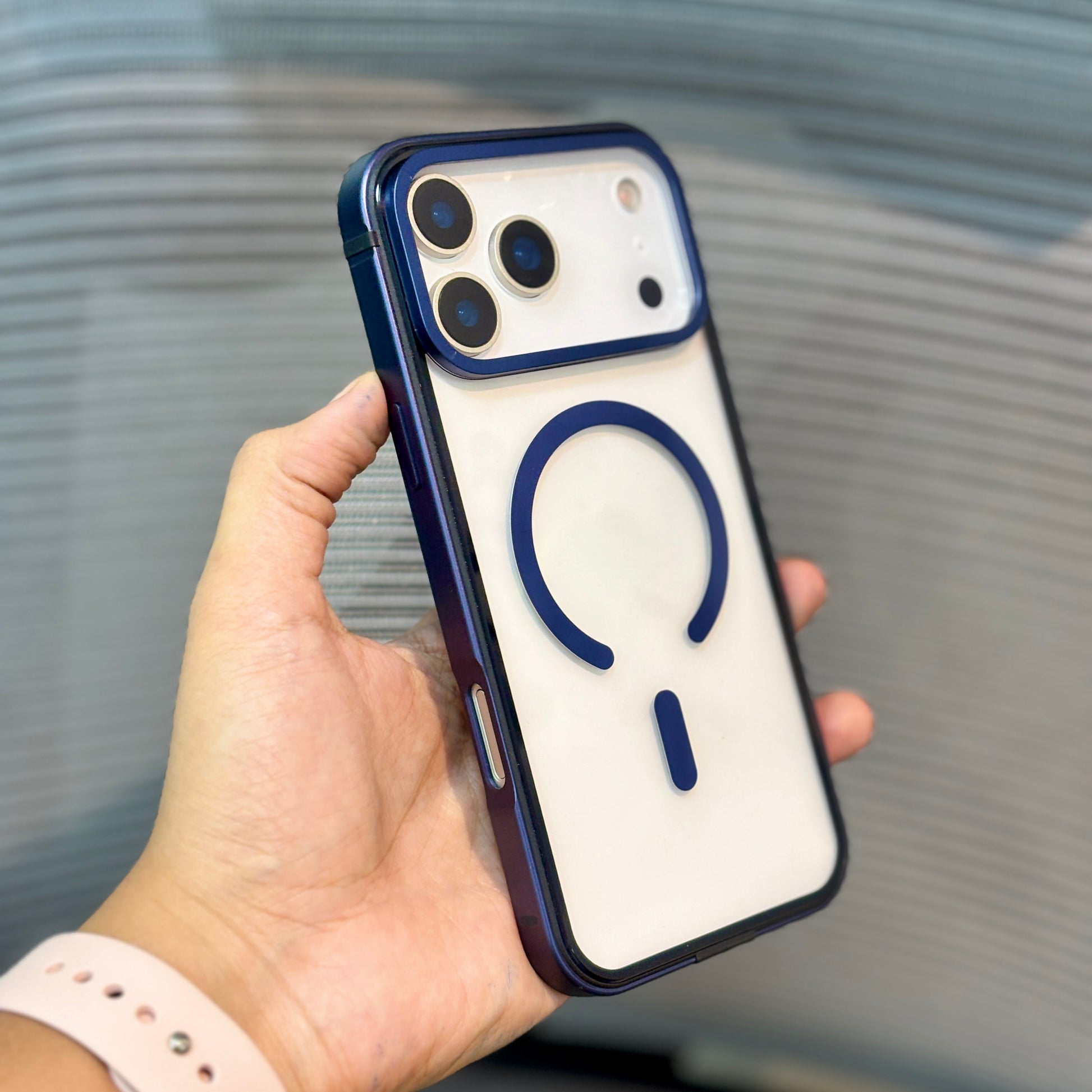 The LumiFrame Case is where clarity meets craftsmanship. Designed with transparent precision, a metallic camera guard, and soft-colored edges, it delivers a refined balance of protection and sophistication — all while staying MagSafe-ready.
