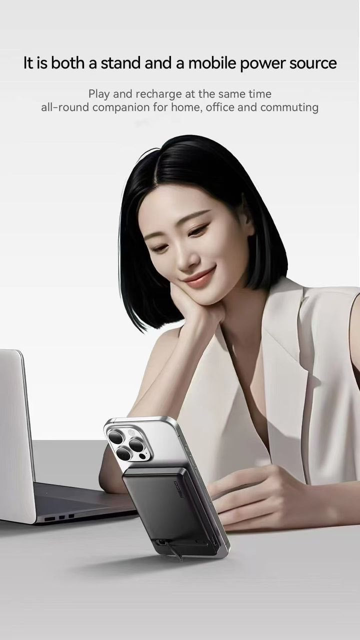 The MagStand Power Bank combines sleek design, magnetic precision, and portable convenience — giving you power and practicality in one compact device. With a foldable stand, it keeps your phone charged and upright wherever you go.