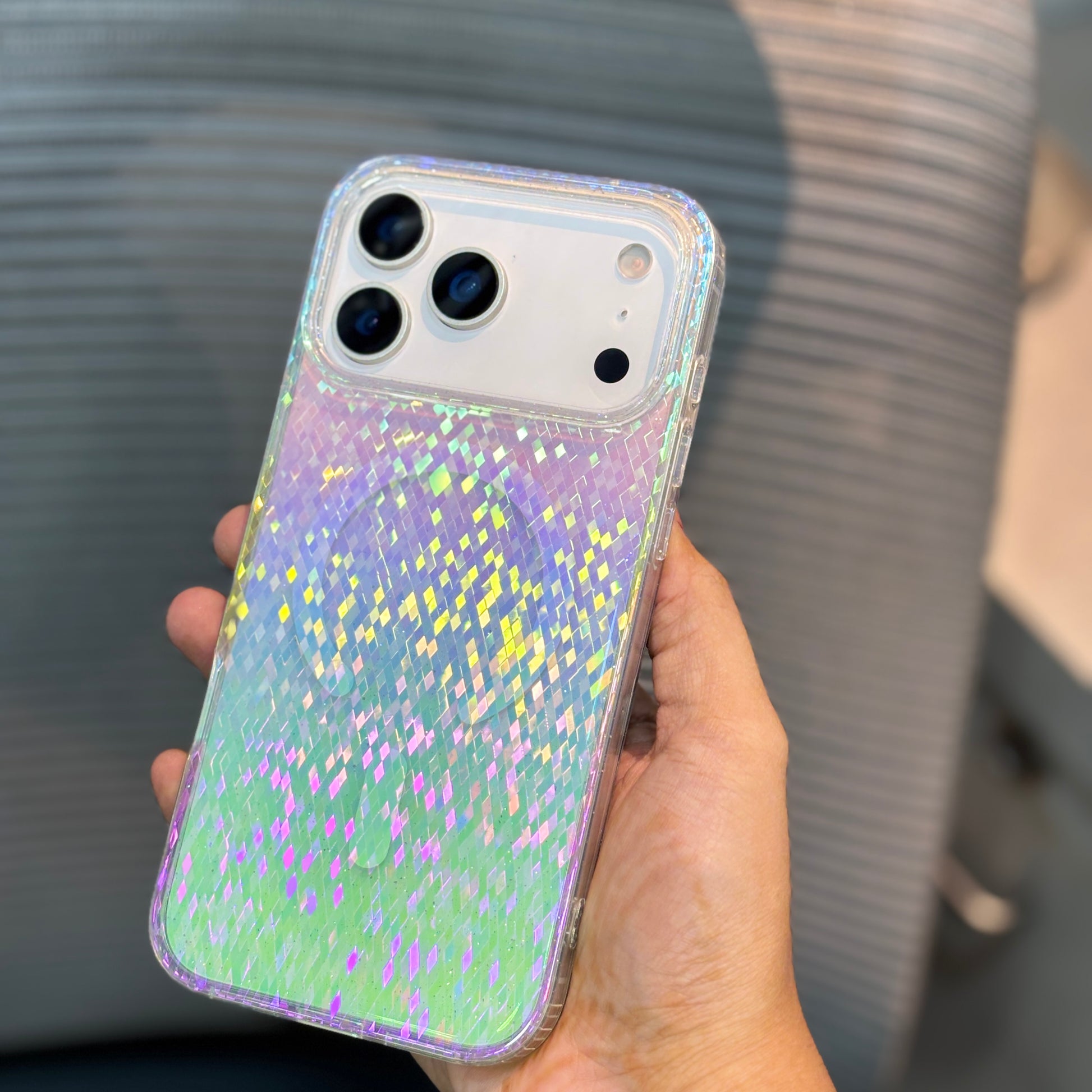 The Sparké MagSafe iPhone Case combines dazzling chromatic sequins with robust protection. Its transparent base highlights your iPhone’s original design while the sparkling finish adds a premium, playful touch.