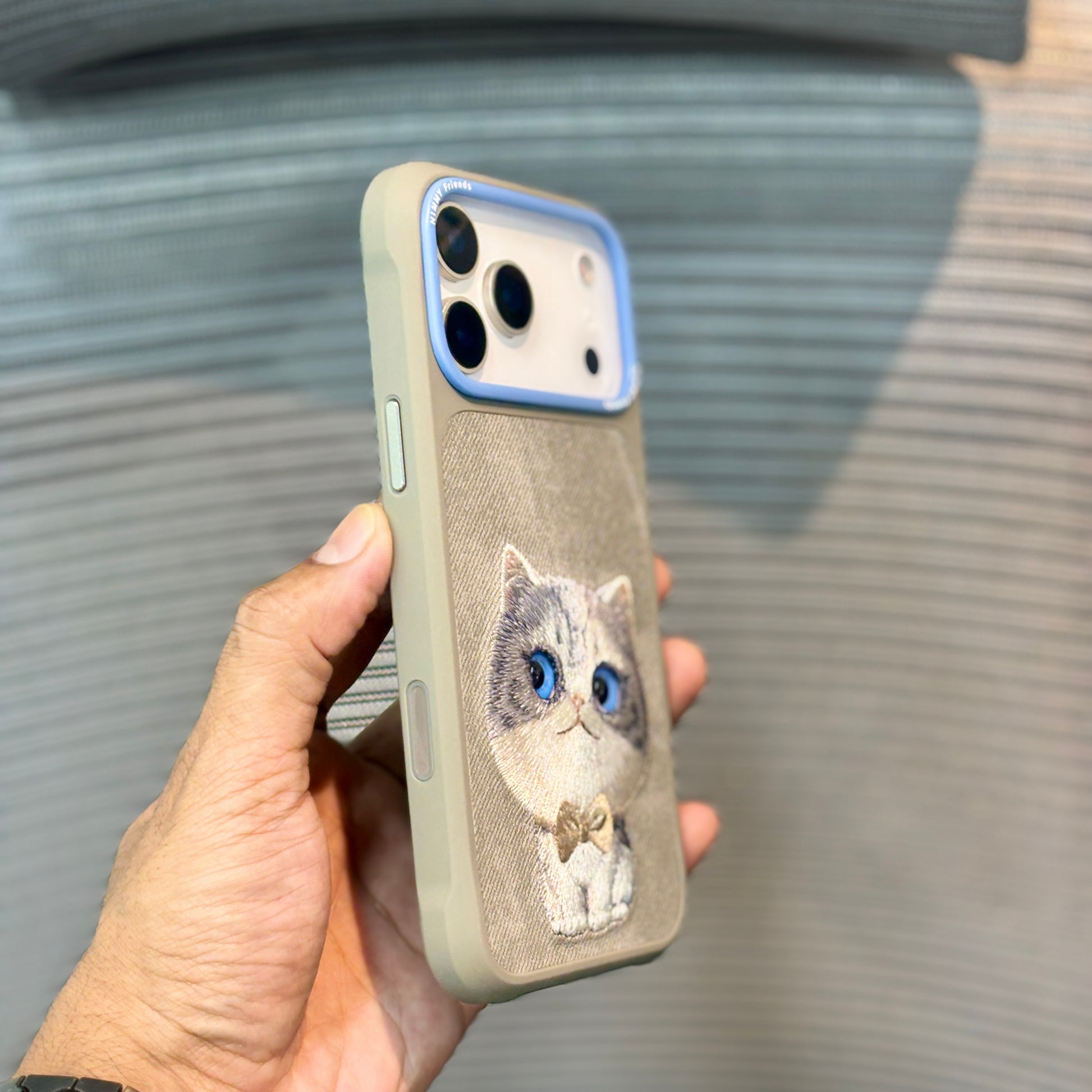 StitchPals Cat Embroidered iPhone 17 Pro Max Case